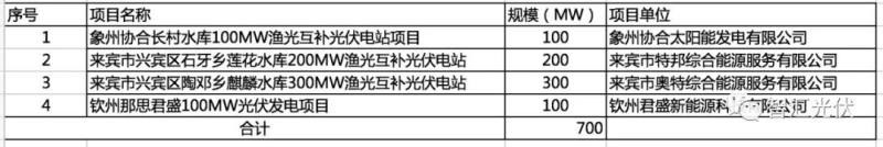 廣西?。?個(gè)項(xiàng)目,共0.7GW