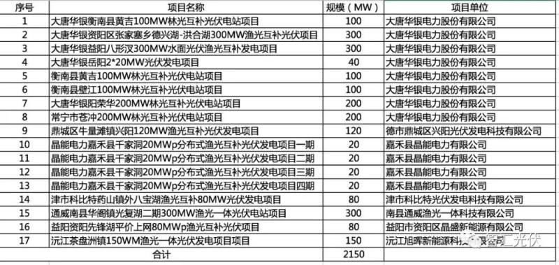 湖南?。?7個(gè)項(xiàng)目,共2.15GW
