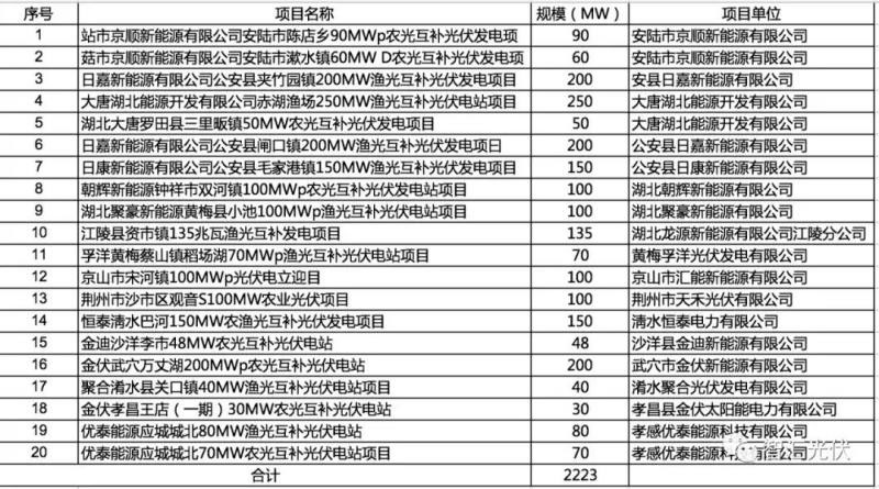 湖北?。?0個(gè)項(xiàng)目,共2.22GW