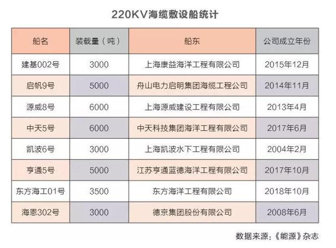 相比之下,海上風(fēng)電施工難度大、工程技術(shù)要求高,海裝船、打樁錘等設(shè)備短板愈加明顯。海上風(fēng)電施工分為基礎(chǔ)施工、吊裝、和海纜敷設(shè)等環(huán)節(jié),對船只的要求各有不同?!赌茉础冯s志統(tǒng)計(jì),目前中國境內(nèi)共有32艘左右安裝船,可以用于海上風(fēng)電吊裝和基礎(chǔ)施工;用于敷設(shè)220KV海纜的施工船僅有8艘,并且一半以上施工船裝載量低于5000 噸,如海恩302號(hào)、基建002號(hào)和凱波6號(hào)裝載量在3000噸左右,很快將不適應(yīng)中國海上風(fēng)電海纜施工要求。
