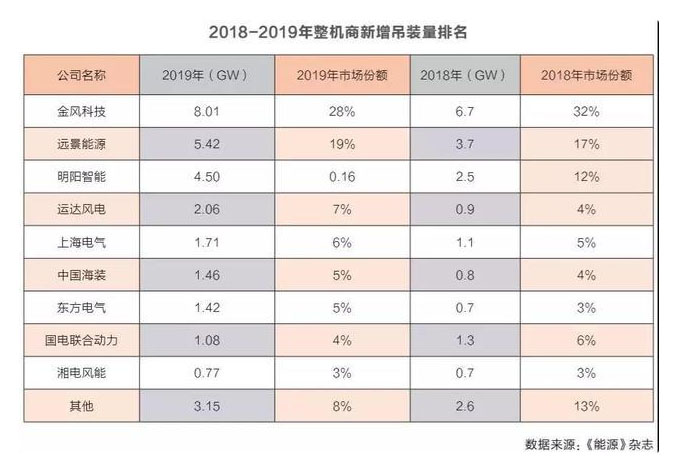 在“搶裝”潮下,風(fēng)電市場由買方轉(zhuǎn)為賣方主導(dǎo),2019年整機(jī)制造企業(yè)訂單規(guī)模大增。