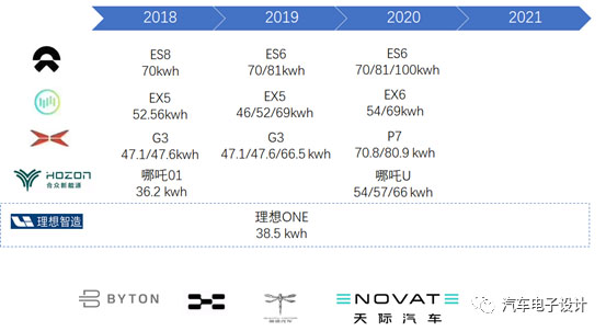 這里還是專注于頭部的幾個(gè)企業(yè),包括蔚來、威馬、小鵬、合眾和理想等在產(chǎn)量和銷量數(shù)量上達(dá)到一定規(guī)模的來看。當(dāng)然分析的重點(diǎn)是基于50kWh和下一代70-80kWh的電池系統(tǒng)。