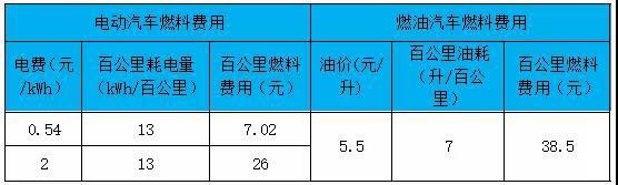 表1 電動汽車與燃油汽車燃料費用對比