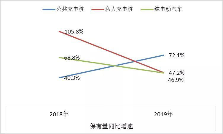 圖3 2018-2019年不同充電樁保有量和電動汽車保有量增速對比