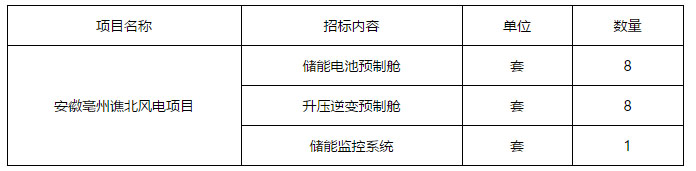 安徽亳州譙北風電場項目配套20MW/20MWh鋰離子電池儲能系統(tǒng)采購項目