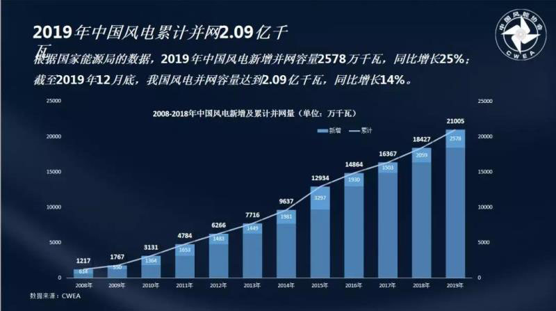 那么2020年風(fēng)電裝機情況會如何?秦海巖秘書長認(rèn)為,在新冠疫情的影響下,2020年風(fēng)電裝機在3000萬千瓦左右,國外進(jìn)口的原材料存在很大的不確定性,對2020年裝機會造成較大影響。在未來幾年中,2000萬千瓦的裝機將成為行業(yè)是否健康發(fā)展的分割線。