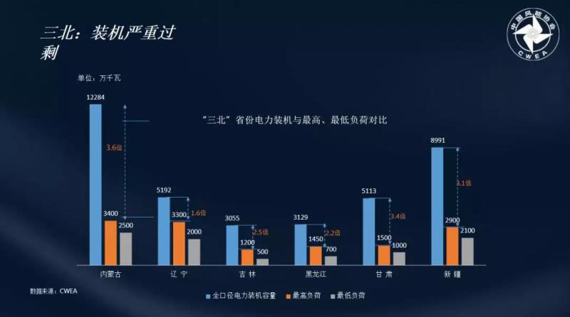 秦海巖秘書長對三北地區(qū)未來市場進(jìn)行了重點講解。在他看來,三北地區(qū)首先面對的是嚴(yán)重過剩的裝機量。三北省份電力裝機與最高、最低負(fù)荷最大差距達(dá)到內(nèi)蒙古的3.6倍,最小差距也有1.6倍。