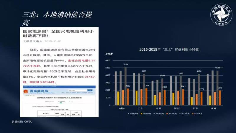 在特高壓外送通道上,2018年,九大特高壓線路輸送了1357.3億千萬時的電量,其中可再生能源達(dá)到386億千萬時,占比僅達(dá)到28%。另外,目前三北地區(qū)特高壓外送項目仍有50GW的基地待建容量。三北地區(qū)風(fēng)力發(fā)電消納很大一部分依靠特高壓外送。但特高壓整體來看難度仍舊較大。