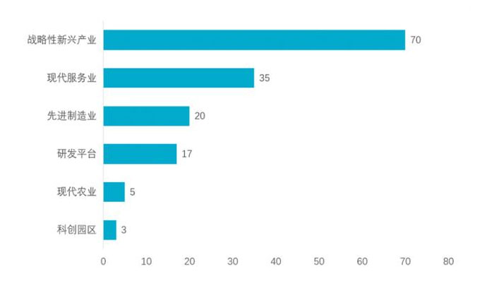 北京和上海都被定位為國家科技創(chuàng)新中心,擁有我國最強的基礎(chǔ)科研實力,也集聚了眾多頂級高校、研究所和國家實驗室。因此,這兩個城市的產(chǎn)業(yè)領(lǐng)域投資更加偏向于科技創(chuàng)新、科研平臺建設(shè)和大科學裝置布局。