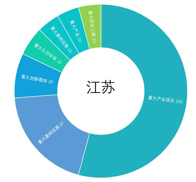 其中,重大產(chǎn)業(yè)項目又分為戰(zhàn)略新型產(chǎn)業(yè)、先進制造業(yè)、現(xiàn)代服務(wù)業(yè)和現(xiàn)代農(nóng)業(yè)四個小分類。其中,以新一代信息技術(shù)、高端裝備、生物、新材料為主的戰(zhàn)略新型產(chǎn)業(yè)項目數(shù)量達到70個,是江蘇省投資力度最大領(lǐng)域。