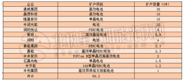 2020年以來,光伏企業(yè)加快擴產步伐,將近四個月的時間里,光伏擴產鏈覆蓋了單晶硅棒(片)、電池、組件等產業(yè)鏈環(huán)節(jié),累計擴產規(guī)模210.92GW。這其中,光伏電池和組件擴產規(guī)模最大,是擴產的主要方向。