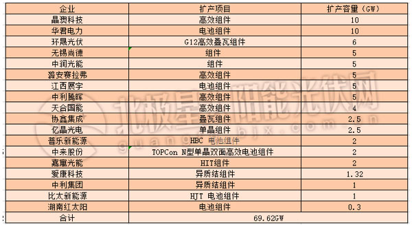 光伏組件累計擴產69.62GW,擴產規(guī)模達到10GW分別是晶澳和華君電力。晶澳是今年最早宣布擴產的企業(yè),2019年晶澳以10.3GW出貨量位居全球出貨量第二,這也是晶澳擴產的底氣。華君電力也在加碼光伏業(yè)務,預計今年新項目建成后,2020年組件產能將達到6-7GW。其余擴產規(guī)模達到5GW的還有6家,累計擴產的企業(yè)多達18家,組件端產能竟備賽顯得愈發(fā)激烈。