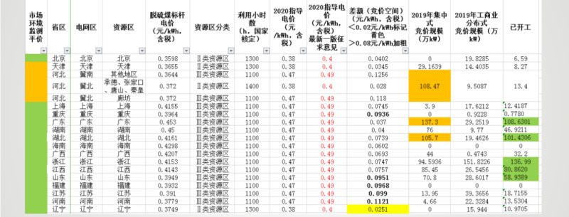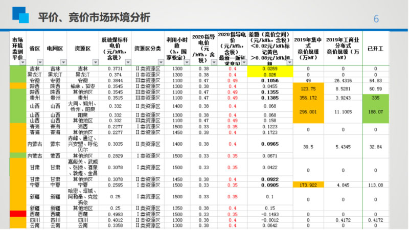 另外,從2019年光伏發(fā)電市場監(jiān)測情況來看,根據(jù)此前西北電力勘測設計院總圖所所長惠星的演講資料,2019年僅有西藏被劃為紅色區(qū)域,除了2018年的紅色區(qū)域新疆、甘肅轉為橙色之外,綠色區(qū)域的覆蓋面積也大幅增加,2018年被劃為橙色區(qū)域的山東、內(nèi)蒙古、河北、福建、海南、重慶等均轉為綠色,這對于2020年的光伏項目發(fā)展也是一大利好。據(jù)了解,2019年光伏發(fā)電市場環(huán)境監(jiān)測評價結果還結合了競價項目的完成情況。