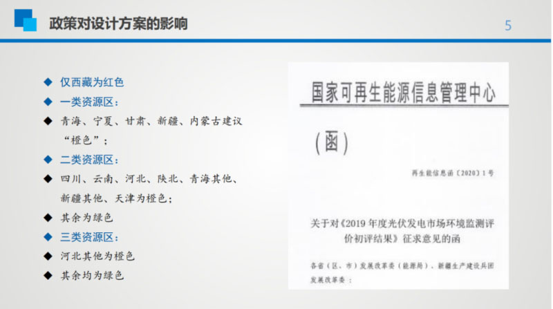 此外,從光伏電站設計、方案比選方面看今年的競價、平價申報,西勘院總圖所所長惠星在此前的高功率組件技術研討會上建議道,在平價、競價市場環(huán)境分析,投資企業(yè)應根據(jù)市場環(huán)境監(jiān)測平價的顏色來判定在做前期工作的項目在申報是否有可能。土地面積充足的西北地區(qū)均為橙色地區(qū),橙色地區(qū)新增規(guī)模取決于電網(wǎng)?;菪墙ㄗh,補貼差額在0.03元以內(nèi)綠色區(qū)域,如遼寧、吉林、黑龍江建議做平價項目;補貼在0.03-0.08的地區(qū)建議做競價項目,同時應考慮地區(qū)2019年的實際開工情況;補貼大于0.08元的地區(qū),競價項目可能非常激烈,要提早做一些工作。競價項目還應考慮收購小時數(shù)。
