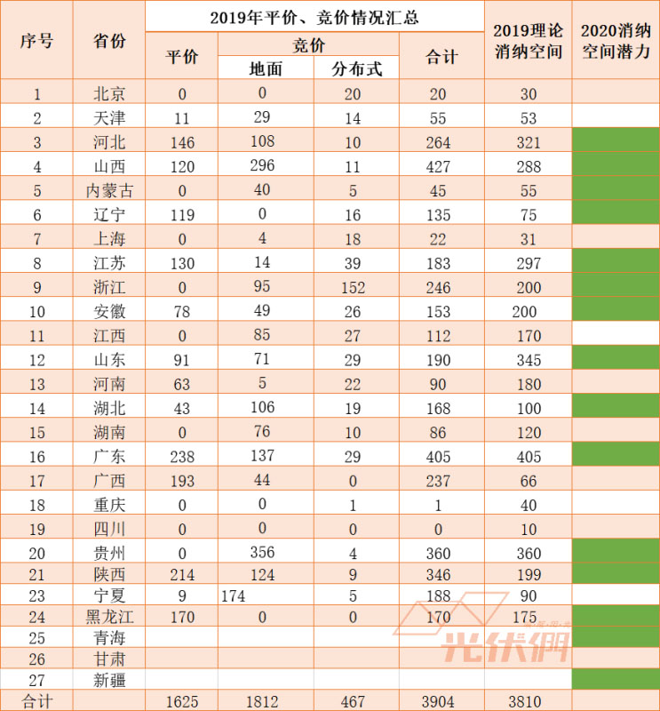 備注:2019年理論消納空間綜合國網(wǎng)、南網(wǎng)相關報告,供參考;標注綠色的為2020年消納空間接近或有望超過1GW的省份。