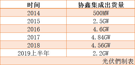 事實(shí)上,當(dāng)前的協(xié)鑫集成狀況令人擔(dān)憂(yōu)。光伏們統(tǒng)計(jì)了協(xié)鑫集成2014年以來(lái)出貨量。在以晶科、晶澳等為第一梯隊(duì)的組件企業(yè)出貨量逐年攀升的同時(shí),協(xié)鑫集成從2016年開(kāi)始,組件出貨量一直維持在4GW左右。