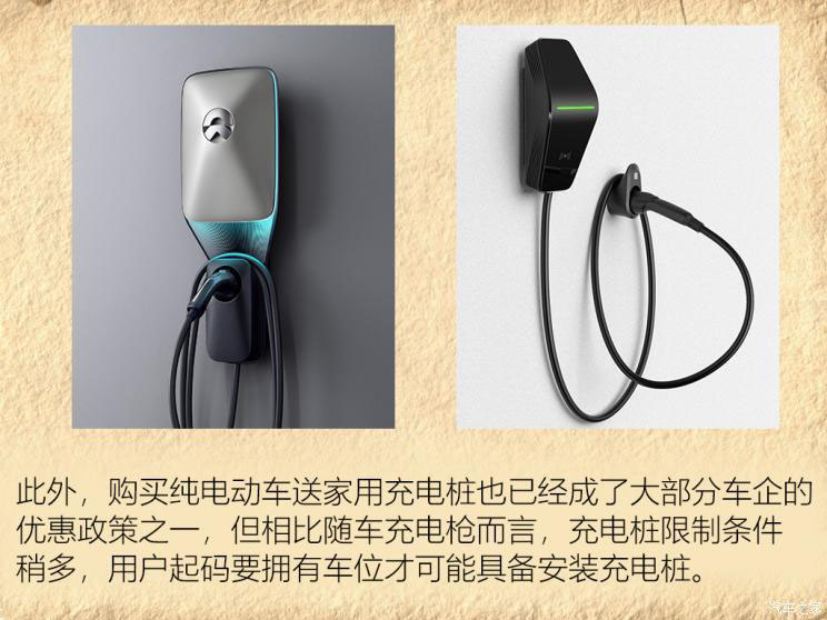 此外,購買純電動(dòng)車還會(huì)得到附贈(zèng)家用充電樁,并提供免費(fèi)安裝,但這要求用戶擁有固定車位或可安裝充電樁的條件。家用充電樁的充電功率高于隨車充,普遍能達(dá)到6-8kW左右,對(duì)于電池容量為50kWh左右的純電動(dòng)車來說,理論上不到10小時(shí)即可將電補(bǔ)滿,比較方便。
