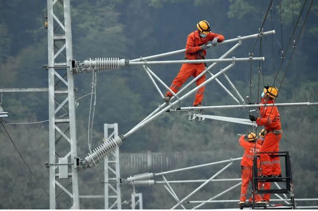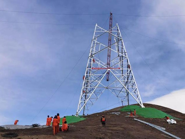 2月24日,青海至河南特高壓直流輸電工程青海段復工,施工人員進行組塔作業(yè)