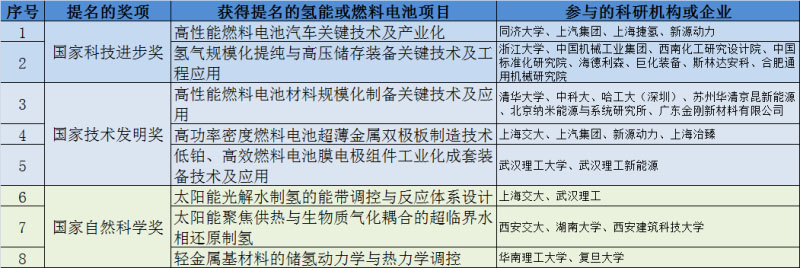 在剛剛結(jié)束的2020年度國(guó)家科學(xué)技術(shù)獎(jiǎng)提名的工作中,氫能和燃料電池領(lǐng)域共計(jì)獲得8項(xiàng)國(guó)家科學(xué)技術(shù)獎(jiǎng)提名。