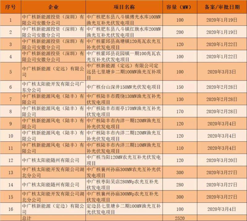 另外,2020年中廣核在光伏領(lǐng)域的發(fā)力程度也值得注意。根據(jù)光伏們統(tǒng)計(jì)的2020年光伏項(xiàng)目備案信息顯示,截至到3月27日,中廣核(包括中廣核太陽(yáng)能和中廣核新能源)已在全國(guó)各省備案了2520MW光伏項(xiàng)目。