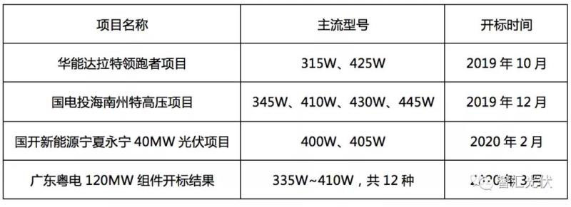 而在近期一些項(xiàng)目的開(kāi)標(biāo)文件中,組件型號(hào)更是五花八門。整理了近期幾個(gè)較大的組件招標(biāo),如下表所示。