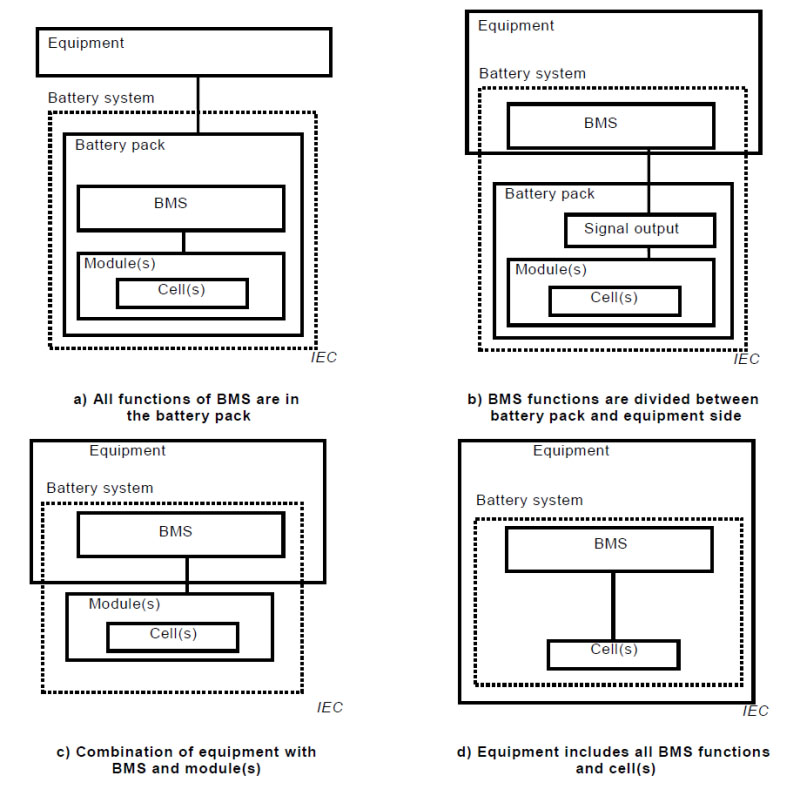 Examples of BMS locations and battery system configurations(IEC 62619【1】)