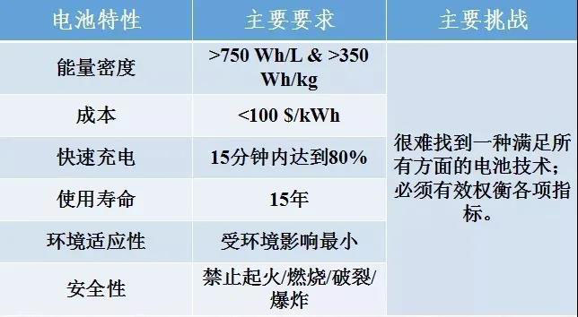 圖1 電動(dòng)汽車電池的要求和挑戰(zhàn)