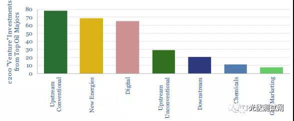 國(guó)際石油公司最近大約200筆風(fēng)險(xiǎn)投資中大約有70家公司在開發(fā)新能源,特別側(cè)重于電力分配、電力移動(dòng)解決方案和太陽能