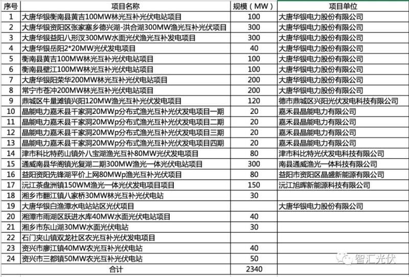 根據湖南省投資項目審批平臺,2020年之后備案的光伏項目規(guī)模超過2.34GW,具體如下表所示。