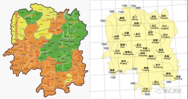 通過消納圖和太陽能資源分布圖可以看出,湖南大部分消納綠色區(qū)域,屬于本省太陽能資源較好的地區(qū)。