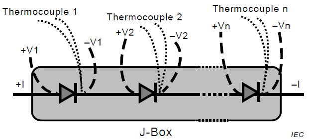標準IEC 62979提供了一種測試方法來評估接線盒內(nèi)的旁路二極管是否容易發(fā)生熱逃逸現(xiàn)象,同時也從側(cè)面對接線盒的散熱能力提出了更高要求,以確保旁路二極管在從正向偏壓轉(zhuǎn)變成反向偏壓的過程中不會發(fā)生熱擊穿。