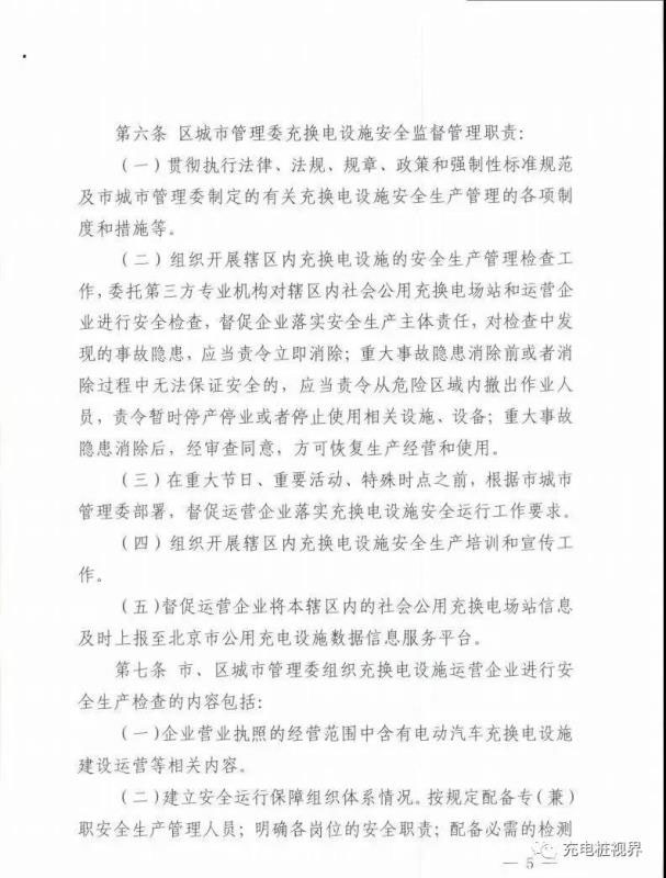 在運(yùn)營(yíng)企業(yè)安全生產(chǎn)管理責(zé)任方面,《北京市電動(dòng)汽車社會(huì)公用充換電設(shè)施安全生產(chǎn)管理辦法(試行)》規(guī)定運(yùn)營(yíng)企業(yè):