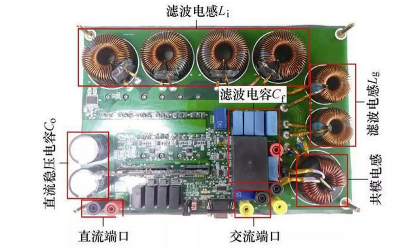 研究者進(jìn)行了濾波器參數(shù)設(shè)計(jì),實(shí)現(xiàn)了電感量最小化與良好的濾波效果。樣機(jī)功率密度約達(dá)22W/in3,具有較高的功率密度,且滿載時(shí)輸出電流THD為3.37%,20次以上諧波幾乎被濾除。