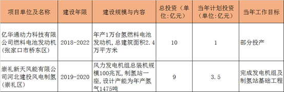 近期,2020年,張家口市有4個氫能與燃料電池項目被列入《河北省2020年省重點項目計劃》。其中2個是計劃開工項目,另兩個是續(xù)建項目,項目合計投資額達185.1億元,項目詳情如下: