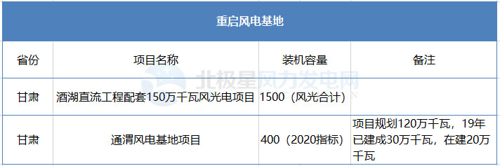此外,甘肅有望在今年解除風(fēng)電紅色預(yù)警,部分停滯項(xiàng)目也相繼進(jìn)入重啟階段,甘肅省酒泉市代市長(zhǎng)王立奇也在第四屆人民代表大會(huì)第四次會(huì)議上指出,將在2020年重點(diǎn)推動(dòng)酒湖直流工程配套150萬千瓦風(fēng)光電項(xiàng)目順利建成。定西市人民政府市長(zhǎng)戴超也在定西市政府工作報(bào)告中指出,在2019年?duì)幦〉斤L(fēng)電指標(biāo)40萬千瓦,2020年將重點(diǎn)實(shí)施通渭40萬千瓦風(fēng)電場(chǎng)。