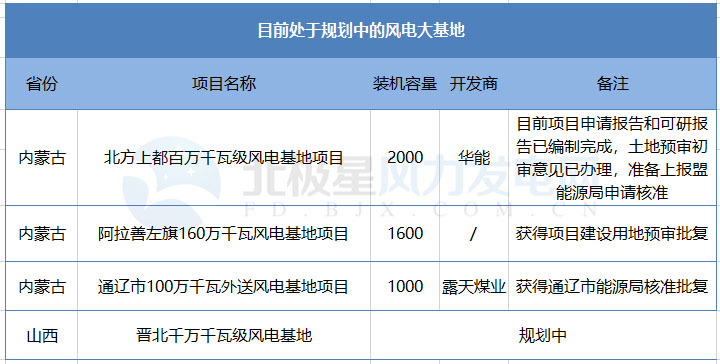 作為傳統(tǒng)能源大省山西在能源轉(zhuǎn)型過程中也在謀求參與到風(fēng)電大基地建設(shè)中,2019年9月山西省發(fā)展改革委主任姜四清在答記者問中表示將在合理開發(fā)晉中南丘陵和山區(qū)低風(fēng)速資源,打造晉北千萬千瓦級(jí)風(fēng)電基地,內(nèi)蒙古地區(qū)三個(gè)處于規(guī)劃中的風(fēng)電大基地,也有望在今年進(jìn)入開工建設(shè)。