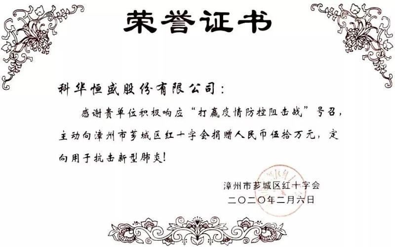 當(dāng)前,疫情防控的狙擊戰(zhàn)正處于關(guān)鍵時期,舉國上下高度重視,也時刻牽動著科華人的心。為馳援新型冠狀病毒肺炎疫情防控工作,2月6日科華恒盛股份有限公司及其全資子公司漳州科華技術(shù)有限責(zé)任公司向廈門市紅十字會、漳州市薌城區(qū)紅十字會捐贈共計200萬元現(xiàn)金。后續(xù),公司將根據(jù)抗擊疫情的需求捐贈我司產(chǎn)品設(shè)備并提供解決方案,全力支持抗擊新型冠狀病毒感染的肺炎疫情,切實(shí)履行上市公司社會責(zé)任。