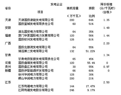 根據(jù)國家發(fā)展改革委通知,公司燃煤機組所在省份的上網(wǎng)電價調(diào)整情況如下: