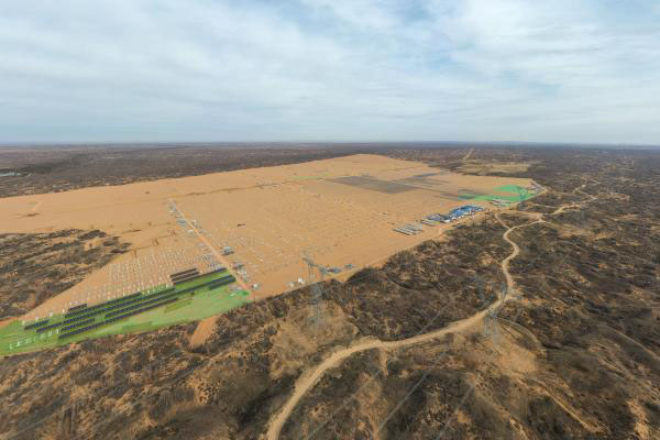 12月25日,華能靖邊光伏項目施工現(xiàn)場航拍圖。澎湃新聞記者 曹俊杰 圖
