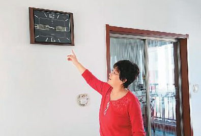 穩(wěn)海陽市民伏秀娟在向記者展示家里的溫度計,溫度計顯示室內溫度22.8度。本報記者 徐佩玉攝定又安全