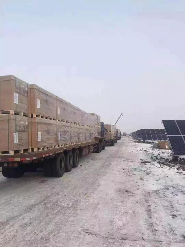 據(jù)此推算,以上三個標(biāo)段的目的地即是運往黑龍江安達(dá)500MW平價項目。其中多晶標(biāo)段1、2的中標(biāo)企業(yè)分別是英利能源(200MW)以及常州億晶光電(120MW),開標(biāo)價格均在1.7元/瓦以下;單晶標(biāo)段1則由錦州陽光中標(biāo),規(guī)模為270MW。(中標(biāo)詳情可參考《晶科、錦州陽光、億晶光電、英利喜提國家電投1.78GW組件大單》);逆變器方面,500MW均采用的是科士達(dá)2.5MW 的1500V集中式箱逆變一體機(jī)。