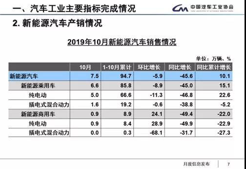10月,新能源汽車產(chǎn)銷分別完成9.5萬輛和7.5萬輛,比上年同期分別下降35.4%和45.6%。