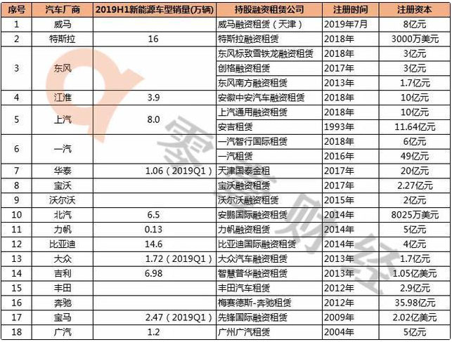據(jù)零壹租賃智庫不完全統(tǒng)計(jì),目前已有18家汽車廠商成立融資租賃公司。其中,東風(fēng)旗下有3家,上汽和一汽旗下分別有2家,華泰旗下的天津國(guó)泰金租為唯一的金融租賃公司,注冊(cè)資本金最高的為奔馳旗下的梅賽德斯-奔馳租賃。