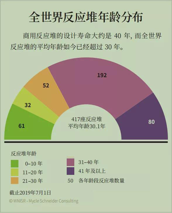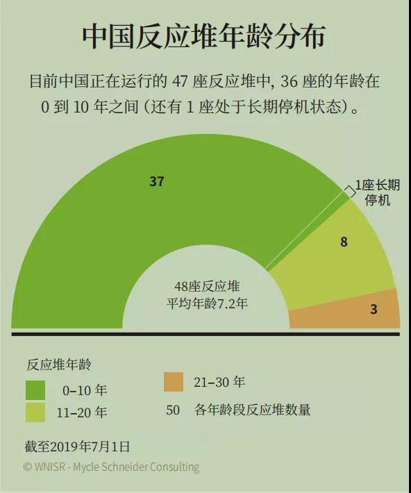 和歐美國(guó)家相比,中國(guó)的核電產(chǎn)業(yè)可以說(shuō)非常年輕。截至2019年7月1日,中國(guó)正在運(yùn)行的反應(yīng)堆有47座,還有一座處于長(zhǎng)期停機(jī)狀態(tài),平均年齡為7.2年。但是施奈德說(shuō):“中國(guó)現(xiàn)在或許不用考慮這個(gè)問(wèn)題,但是它總會(huì)發(fā)生,而且會(huì)集中爆發(fā)?!?