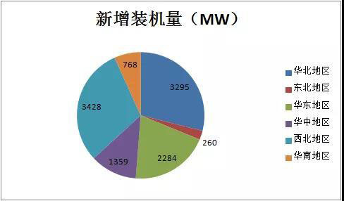 從新增裝機(jī)布局來看,2019年上半年,華北地區(qū)新增裝機(jī)329.5萬千瓦,占全國的28.9%;東北地區(qū)新增裝機(jī)26.0萬千瓦,占全國的2.3%;華東地區(qū)新增裝機(jī)228.4萬千瓦,占全國的20.0%;華中地區(qū)新增裝機(jī)135.9萬千瓦,占全國的11.9%;西北地區(qū)新增裝機(jī)342.8萬千瓦,占全國的30.1%;華南地區(qū)新增裝機(jī)76.8萬千瓦,占全國的6.7%。