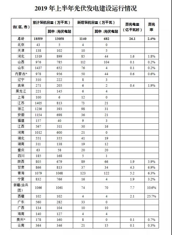 全國各省(區(qū)、市)2019年上半年光伏發(fā)電建設(shè)運(yùn)行情況詳見附表。