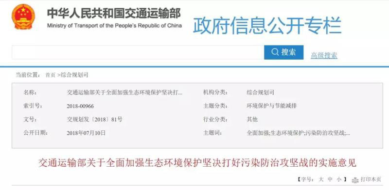 2018年6月,交通運輸部就在例行新聞發(fā)布會上通知,要求到2020年底,我國重點區(qū)域直轄市、省會城市、計劃單列市建成區(qū)的公交車將全部更換為新能源汽車。并于2018年7月,在其官網(wǎng)發(fā)布《交通運輸部關(guān)于全面加強(qiáng)生態(tài)環(huán)境保護(hù)堅決打好污染防治攻堅戰(zhàn)的實施意見》。