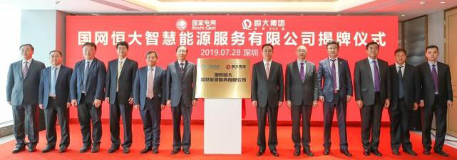國家電網(wǎng)高管和恒大集團(tuán)高管在揭牌儀式上合影