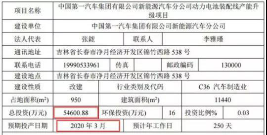 日前,據(jù)長春生態(tài)環(huán)境局消息,為提高產(chǎn)品效率,一汽新能源汽車分公司計劃投資5.46億元建設(shè)電池裝配線產(chǎn)能升級項目,改造后設(shè)計年產(chǎn)量為11.8萬套,預計到明年3月份正式投產(chǎn)。
