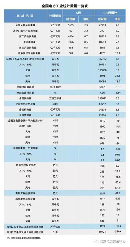 6月18日,國家能源局發(fā)布1~5月份全國電力工業(yè)統(tǒng)計數據。
